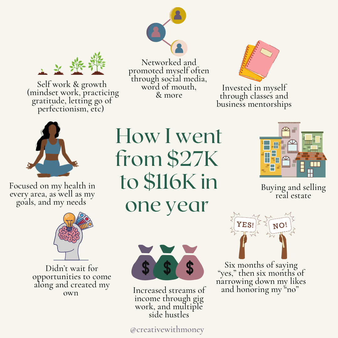 Creative With Money 2/7/23 Creative With Money 2/7/23 I grew my income x4 in one year, going from $27k to $116k. Here’s how I did it. Read More